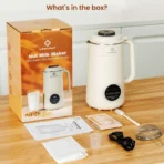 Versatile Functionality: This 40oz machine offers 8-in-1 capabilities, including making various plant-based milks (nut, oat, soy), hot soup, juice, milkshakes, boiled water, and a self-cleaning function.