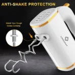 - Included Accessories: Comes with essential baking tools: 2 dough hooks for kneading and 2 beaters for eggs and cream.