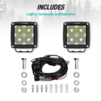 TYPE S – Elevate 3 Inch Spot + Flood Combo Beam Cube Pod Light Set and Harness Kit – DOT Compliant – 4,000 Total Raw Lumens, Waterproof, Die-cast, Off Road Lights, Truck, Jeep, UTV, ATV, SUV, 2 Pack