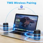 - Immersive Audio: Equipped with a high-quality driver and advanced acoustic design, it delivers true 360-degree stereo sound with clear highs and deep bass, enhanced by TWS mode for left and right channel pairing.